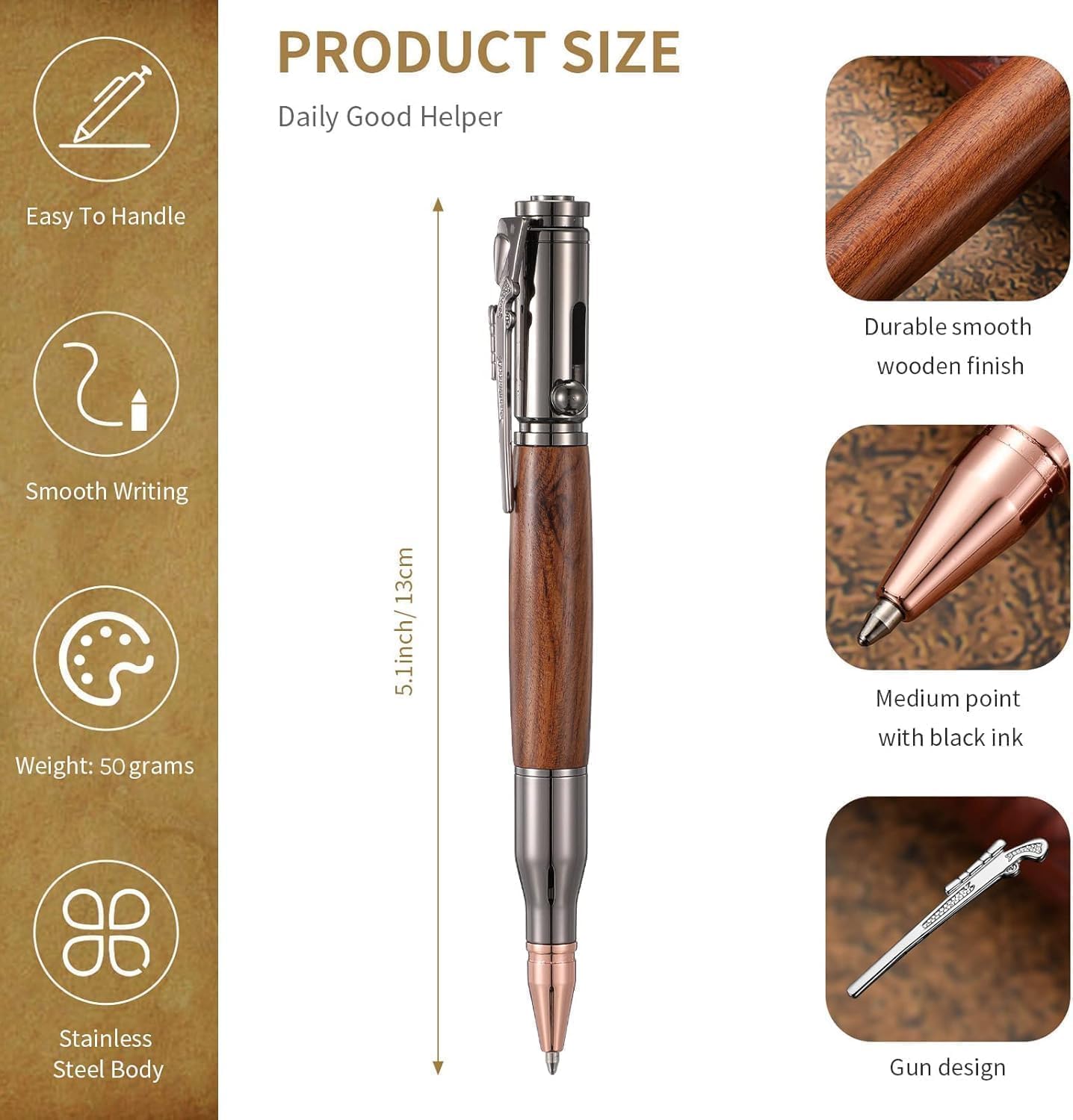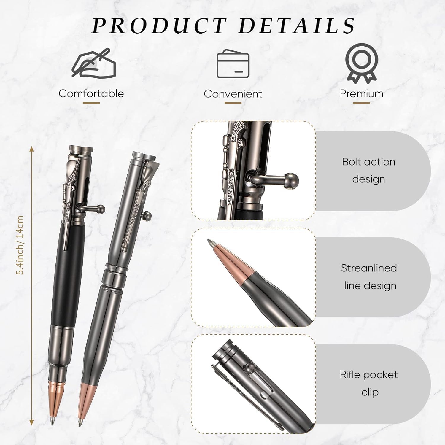 Smoothly Writing Experience -The vintage & fashion design makes the metal pen easy to grip and glide on paper. The weight and balance are perfectly achieved, giving your an enjoyable writing experience every time. Offering smudge-free pens, writing, and marking your every important moment.