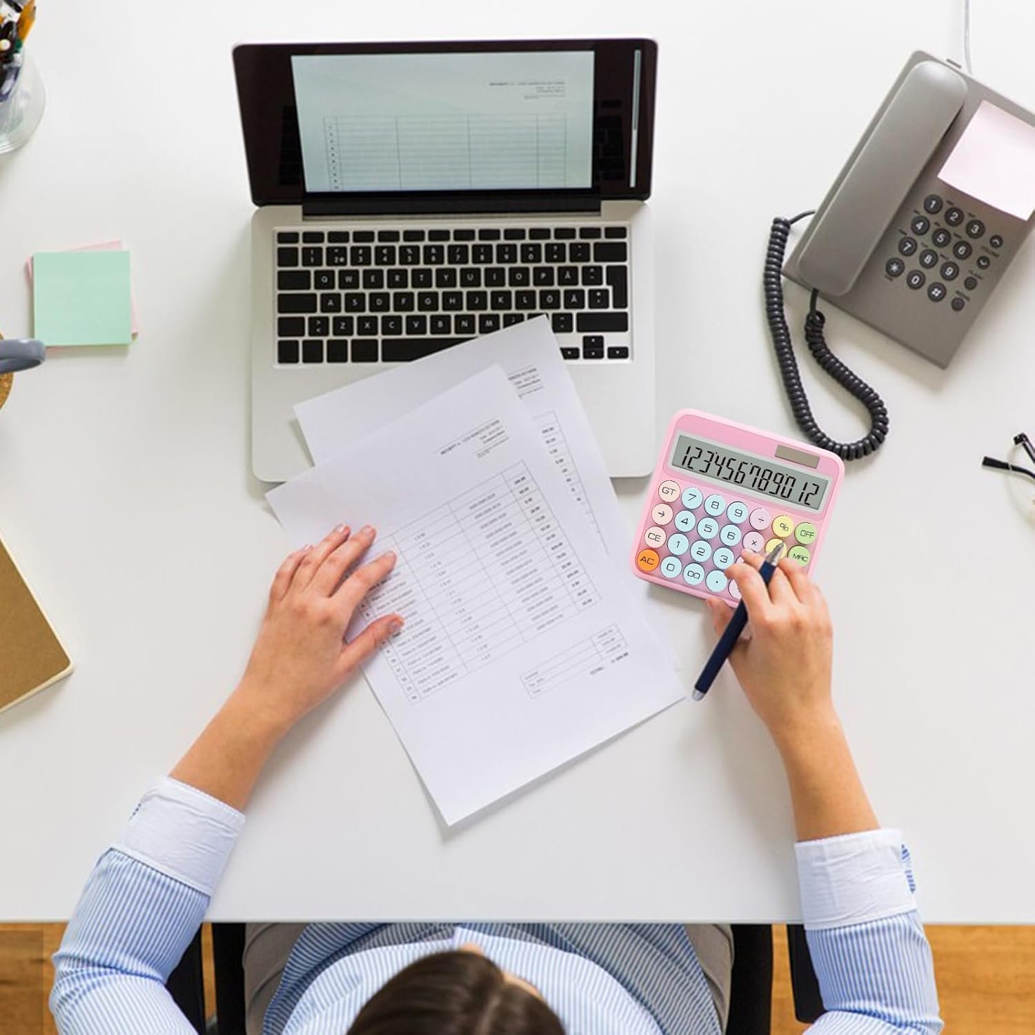 Imitation Mechanical Keyboard Design - Our cute calculator is made with a large LCD display and, 12-digit display.The big buttons imitating the knocking feel of a mechanical keyboard. Your calculation process will be faster and smoother with this calculator’s responsive buttons.