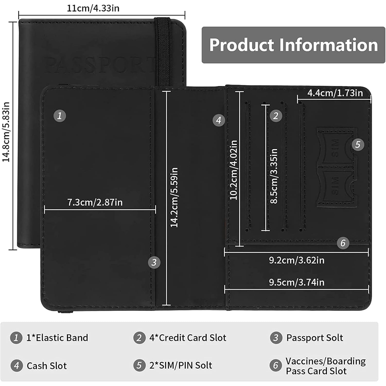 - ๐ Organized Storage โ 1 passport slot, 4 card slots, 1 ticket slot, 1 cash slot & 2 SIM card slots.